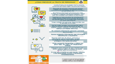 La trata de personas es un peligro real, incluso en nuestras comunidades. Aquí cómo protegerse:1.     ¡Desconfía! No aceptes ofertas de trabajo o estudios en otra ciudad de personas que no conoces bien, ...